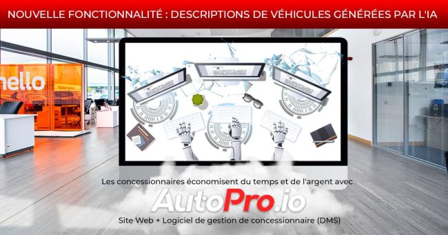 Nous sommes ravis d’annoncer le dernier ajout au logiciel de gestion de concession AutoPro.io. Cette fonctionnalité révolutionnera totalement la façon dont vos véhicules sont présentés sur votre site web et sur d’autres plateformes, en ajoutant automatiquement votre logo, ou une autre image de votre choix, à toutes les images de véhicules téléchargées par le biais…