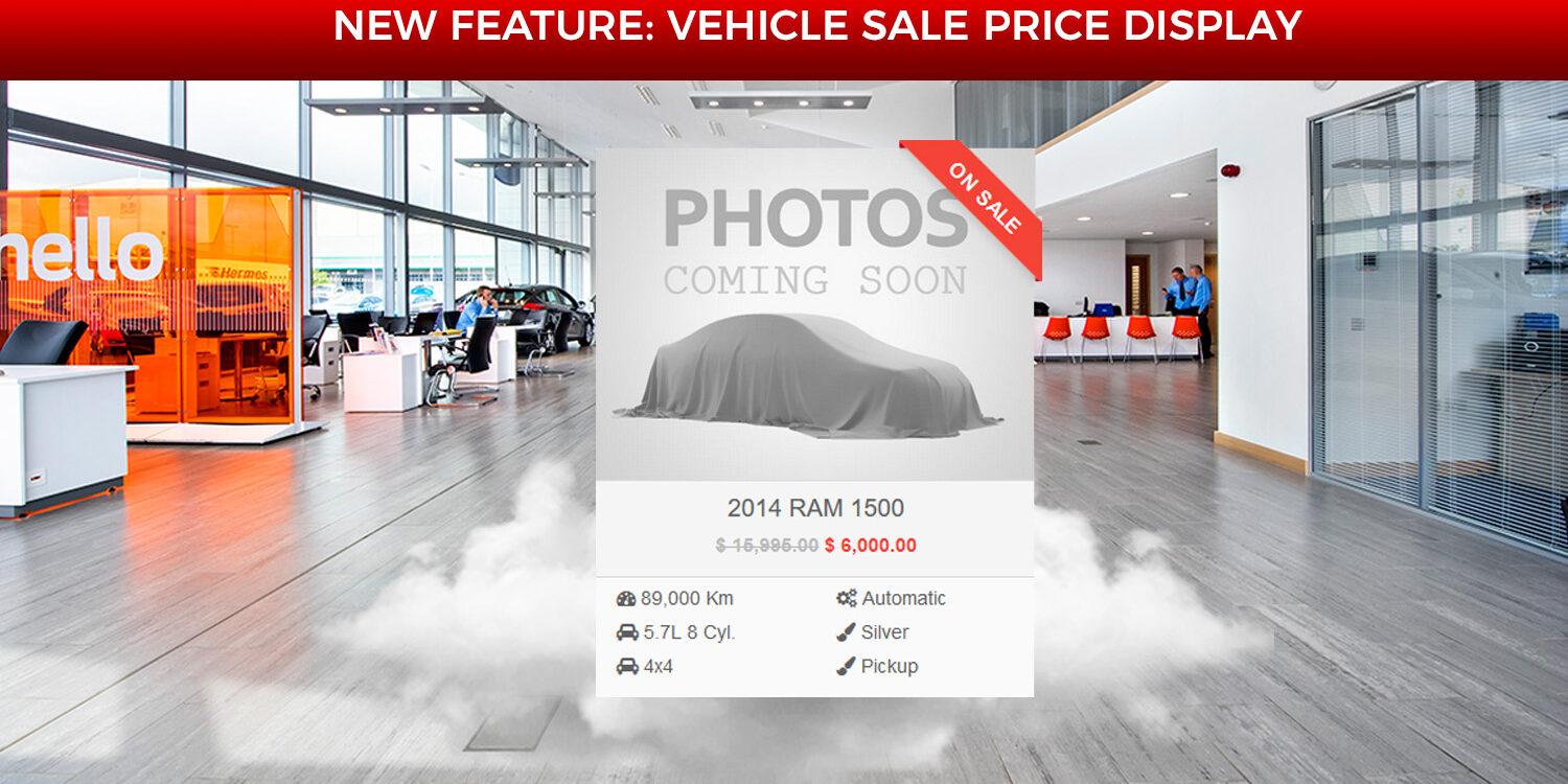 With this new feature, you can now display a special discounted sale price for your vehicle, and highlight the fact that the vehicle is on sale.